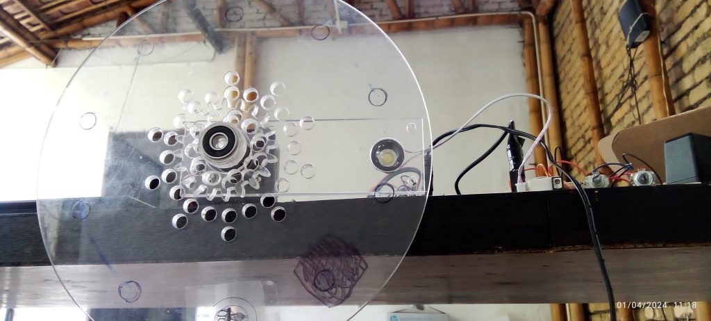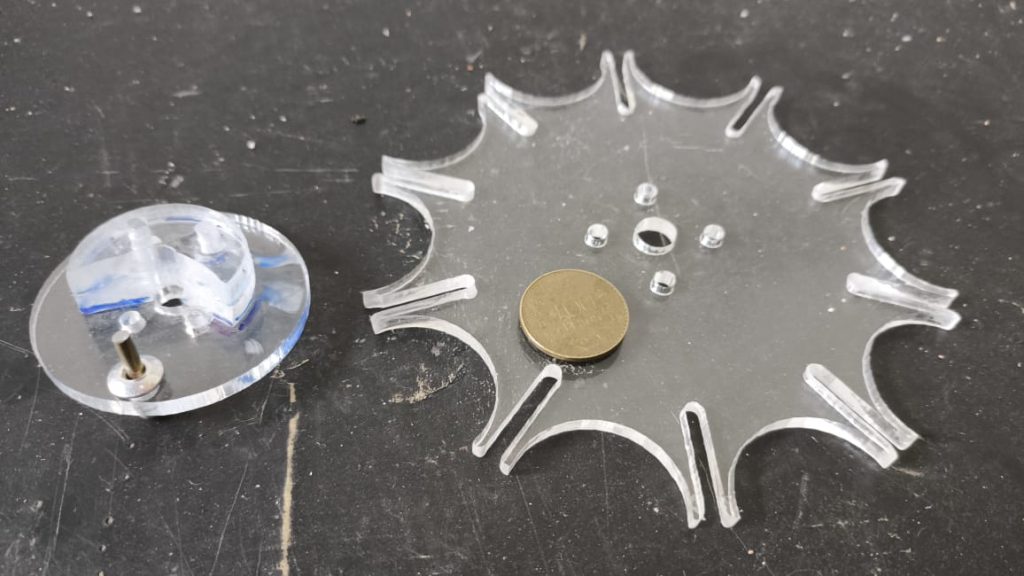 Pruebas con el mecanismo rueda de Ginebra. Corte láser en acrílico