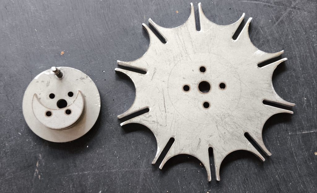 Pruebas con el mecanismo rueda de Ginebra. Corte láser en acero inoxidable