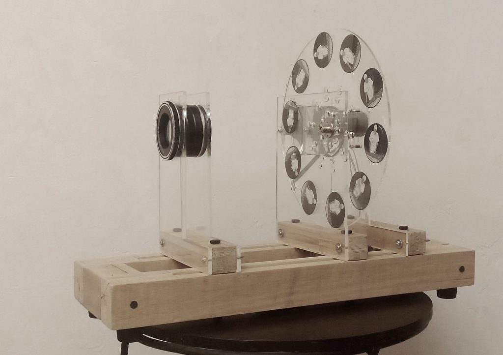 En la primera versión la obturación de la imagen fue realizada a través de un luz estroboscópica (que enciende y apaga rápidamente), permitiendo que la animación emerja.